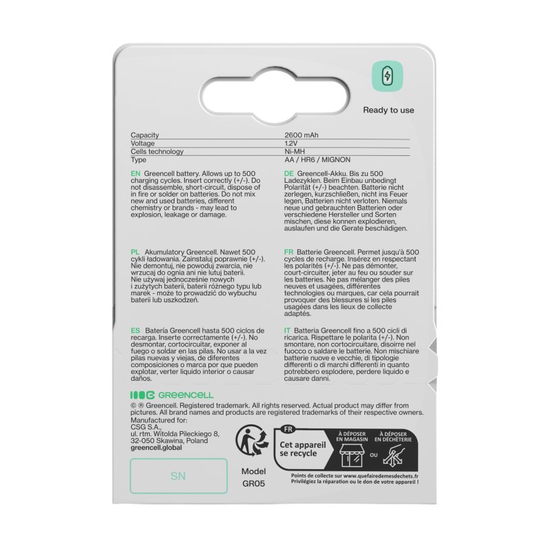 Cada año utilizados más de 40.000 millones de baterías desechables en todo el mundo, que a menudo se tiran directamente al medioambiente. Las batería Green Cell garantizan hasta 3 años de uso intensivo, lo que equivale al consumo de decenas de baterías AA tradicionales. ¡Con las baterías Green Cell, puedes reducir significativamente los residuos y ayudarás a proteger el medioambiente!