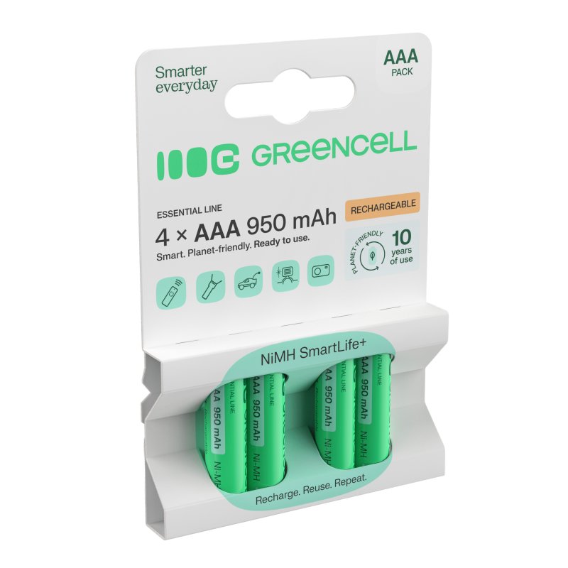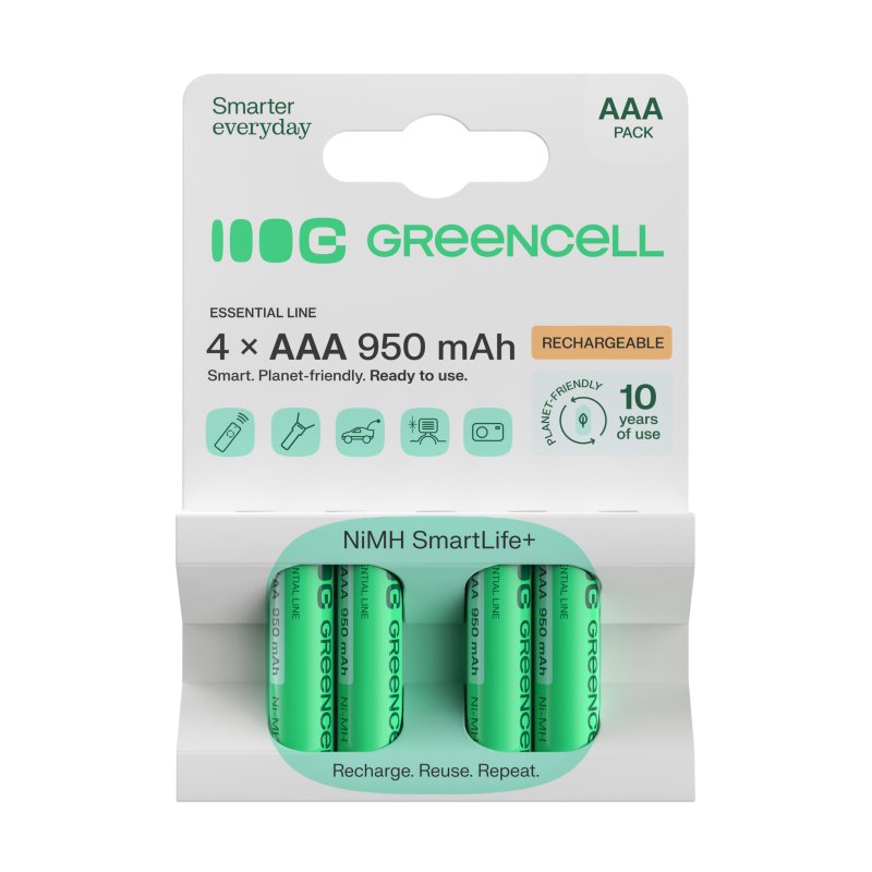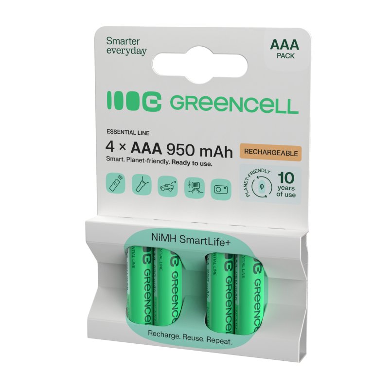 Se trata de baterías recargables que pueden usarse del mismo modo que las baterías desechables AAA. La diferencia es que pueden recargarse, por lo que los costes de uso de muchos dispositivos domésticos se reducen en comparación con los costes de alimentación de las baterías tradicionales. Se caracterizan por su alta capacidad real: 950mAh, que proporcionan una mayor duración a la batería en comparación con las baterías desechables.