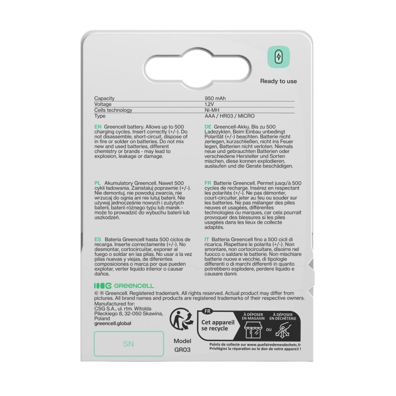 Cada año utilizados más de 40.000 millones de baterías desechables en todo el mundo, que a menudo se tiran directamente al medioambiente. Las batería Green Cell garantizan hasta 3 años de uso intensivo, lo que equivale al consumo de decenas de baterías AAA tradicionales. ¡Con las baterías Green Cell, puedes reducir significativamente los residuos y ayudarás a proteger el medioambiente!