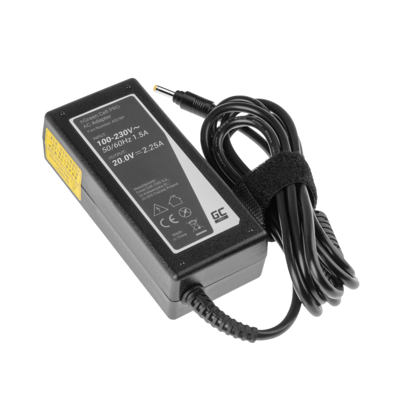 Fuente de alimentación perfectamente compatible hecha de materiales de alta calidad, que contiene piezas certificadas Green Cell. Garantiza la seguridad de la fuente de alimentación y el trabajo de su computadora portátil.