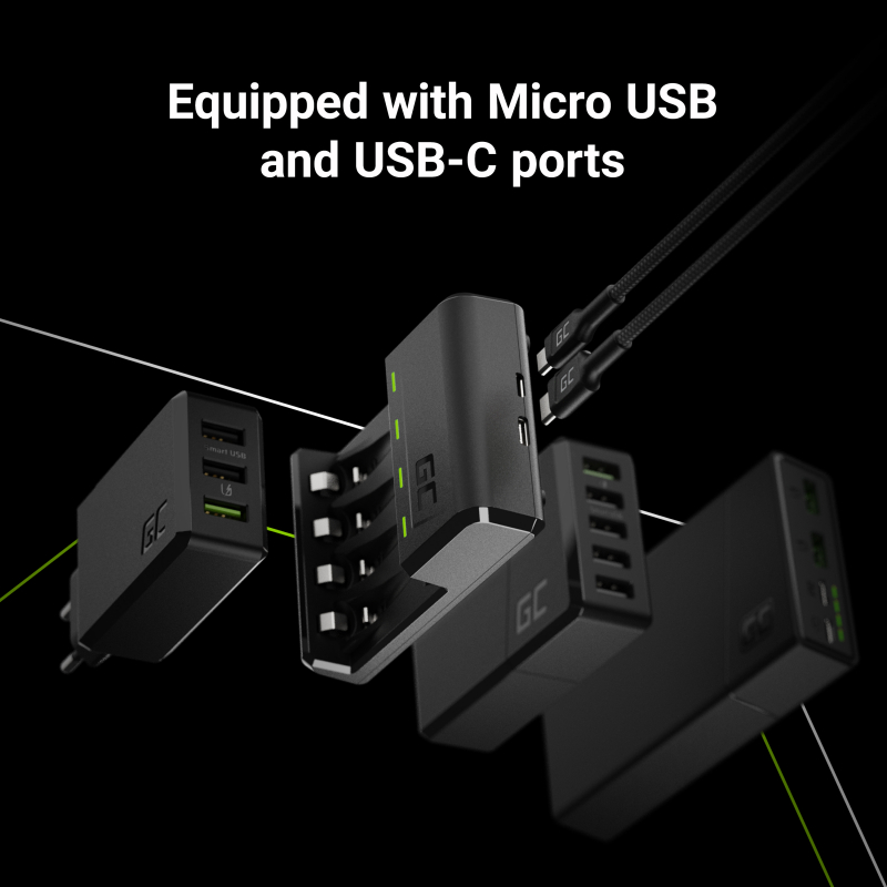• Gracias a los puertos USB-C y micro USB integrados, el cargador puede ser alimentado por todos los tipos más populares de fuentes de alimentación y bancos de energía.
