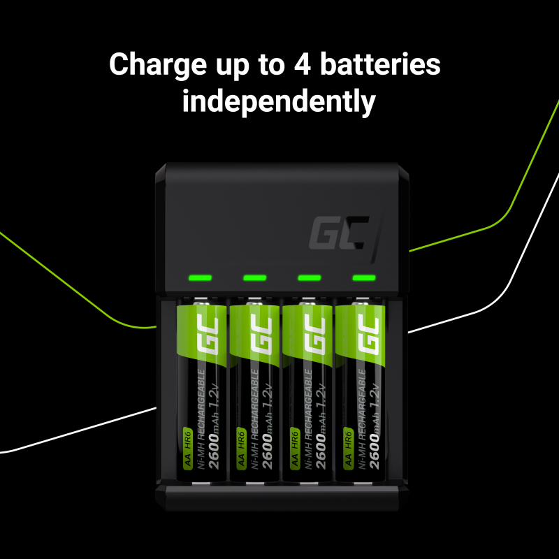 Set Cargador Green Cell GC VitalCharger y baterías NiMH 2x AA 2000mAh 2x AAA 800mAh