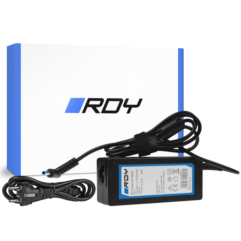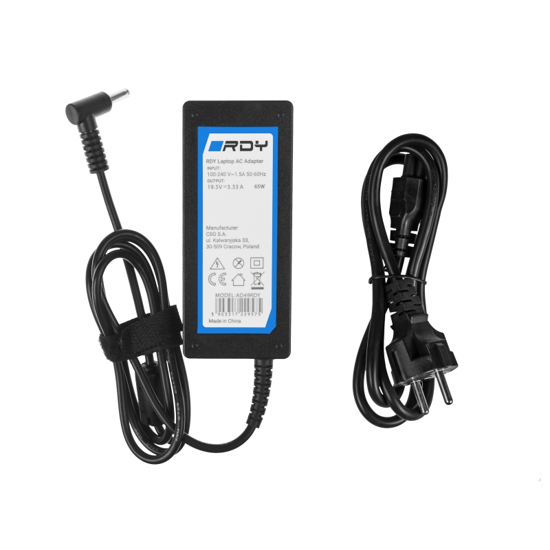 Será adecuado para nuestra computadora portátil si el diámetro del conector cumple con la especificación del diámetro exterior, por ejemplo, 5,5 mm, y los parámetros de salida son compatibles. ¿Qué son los parámetros de salida? Es el valor de voltaje [V] y corriente [A] dado por la fuente de alimentación de una computadora portátil, por ejemplo, 19V 4.74A.